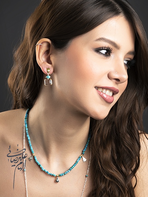 Tulip collection Earrings Silver 925, Gold-plated, Turquoise, Natural crystal
